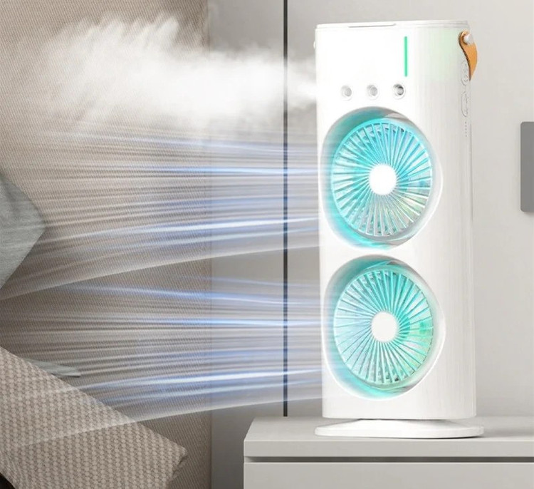 پنکه مه پاش دو فنه گردان یک نوآوری جذاب و کاربردی برای روزهای گرم است که علاوه بر ایجاد نسیم خنک، با مه پاشی هوشمند، هوای محیط را مرطوب و مطبوع میکند. این دستگاه با طراحی کم حجم و قابل حمل، گزینهای ایدهآل برای استفاده در خانه، محل کار، سفر و محیطهای تفریحی به شمار میرود.