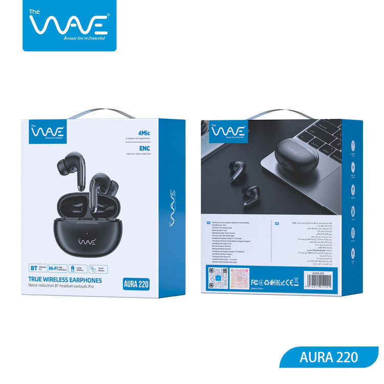 Wave Aura 220 از نوع داخلگوشی (In-ear) طراحی شده و با کنترلهای لمسی کار میکنه. یعنی برای پخش یا توقف موزیک، تغییر ترک یا حتی پاسخ به تماس فقط کافیه یه لمس سبک بزنی. چراغهای LED قرمز و سفید روی گوشی هم وضعیت شارژ و اتصال رو بهخوبی نشون میدن. طراحی سبک و ارگونومیک این مدل باعث میشه حتی بعد از چند ساعت استفاده هم اذیت نشی.