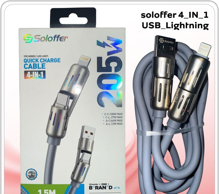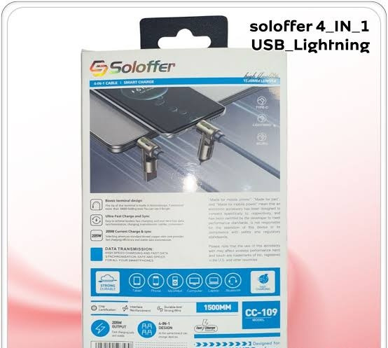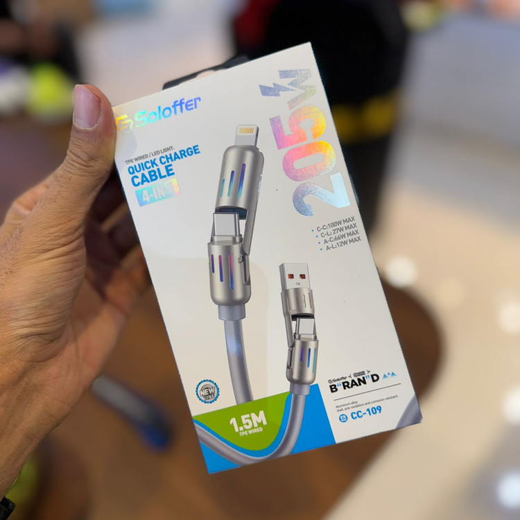 کابل شارژر چهار کاره Soloffer CC-109 محصولی حرفهای برای کاربرانی است که به سرعت شارژ بالا، ایمنی و کیفیت ساخت اهمیت میدهند. این کابل نه تنها نیازهای روزمره، بلکه نیازهای تخصصیتر مانند شارژ لپتاپهای گیمینگ یا تجهیزات استودیویی را نیز به بهترین شکل برطرف میکند. اگر به دنبال یک کابل همهکاره، مقاوم و آیندهنگر هستید، CC-109 بدون شک ارزش سرمایهگذاری را دارد.