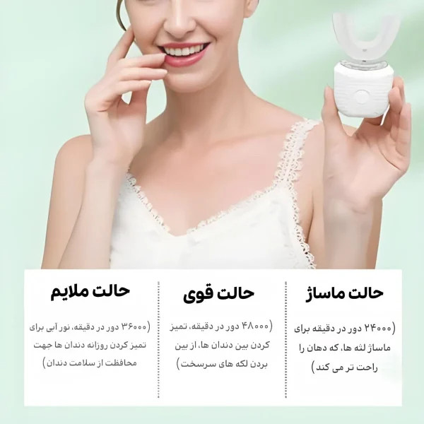 مسواک برقی یو شکل MY-116 با تمیزکنندگی ۳۶۰ درجه، چهار حالت عملکرد، سیلیکون بهداشتی، بدنه ضدآب و شارژ بیسیم، یک انتخاب کاربردی برای افرادی است که به سلامت دهان و دندان اهمیت میدهند و بهدنبال مسواک زدنی سریع، راحت و منظم هستند 🦷✨