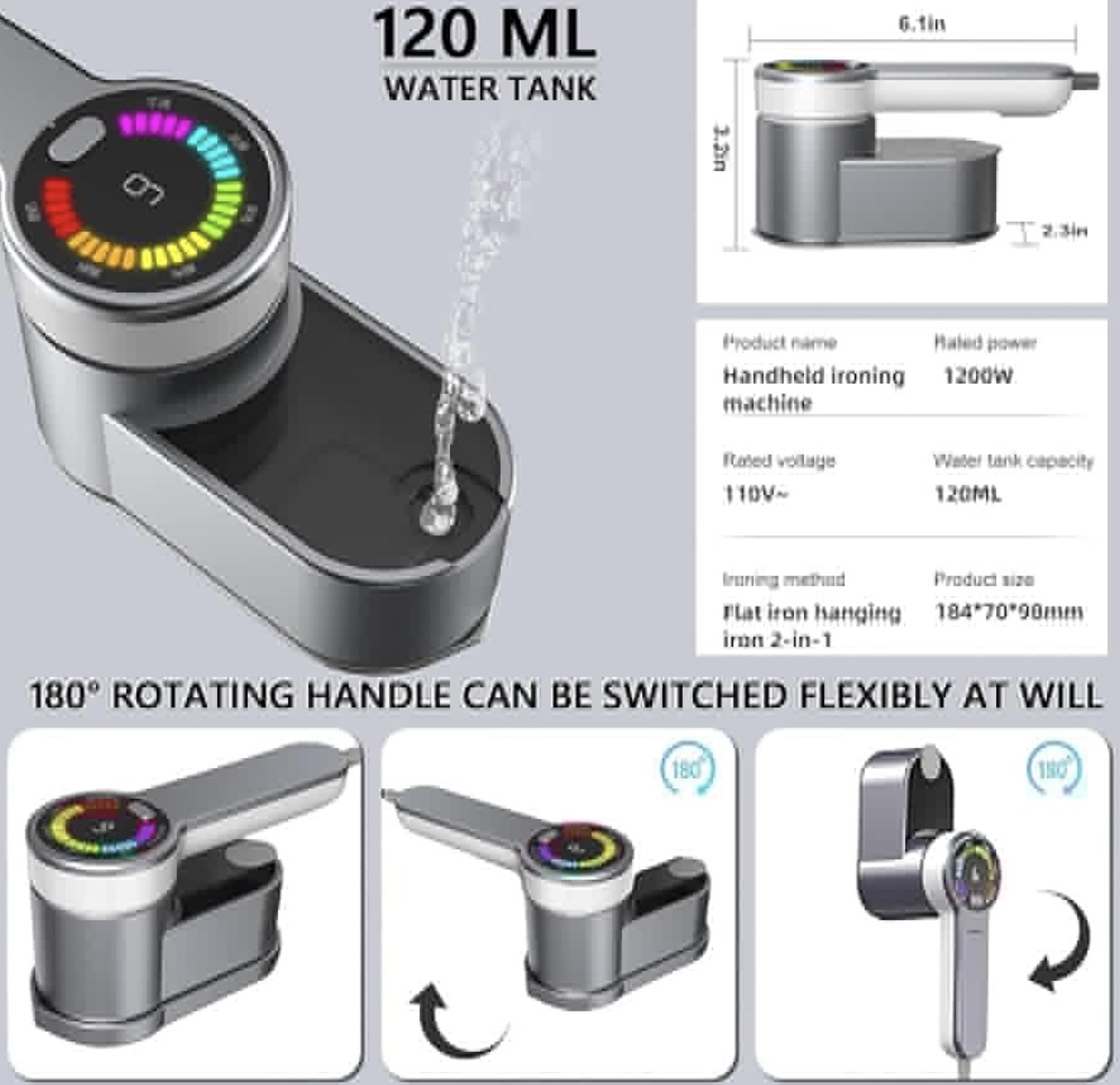 مجهز به مخزن آب 120 میلیلیتری شفاف و قابل جدا شدن، این بخارگر امکان استفاده مداوم بدون نیاز به پر کردن مکرر را فراهم میکند. همچنین با قابلیت گرم شدن سریع در 5 ثانیه و سری چرخشی 180 درجه، میتوانید بهراحتی بهصورت عمودی یا افقی لباسها را صاف کنید.