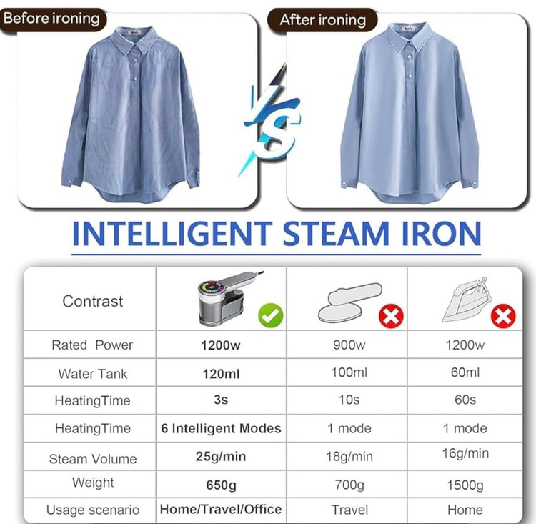 بخارگر دستی LYMUGEZI با توان 1200 وات و طراحی سبک و قابل حمل، گزینهای ایدهآل برای استفاده در منزل و سفر است. این دستگاه با 6 حالت تنظیم بخار، برای انواع پارچهها از جمله ابریشم، پشم، نخ و کتان مناسب بوده و از طریق نمایشگر دیجیتال LED، تنظیمات دقیق را در اختیار شما قرار میدهد.